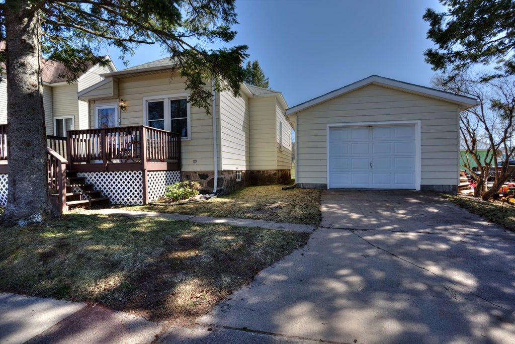 Ready for Relaxation! This cute home comes fully furnished, just insert yourself, family and friends. Welcoming front deck shaded by trees. Mud room to help keep clutter and gear out of the home. Open living room with a media center and electric fireplace to give the space a cozy feeling. Two bedrooms off the living room. Open dining area to the kitchen and living room. Kitchen has dark oak cabinets, newer counter tops, new faucet, new dishwasher, and first floor laundry. There is an extra closet for pantry or coats. Large full bathroom off the living room with a full wall linen closet and low threshold shower with a seat. Back deck off the kitchen with a walkway to the garage and extra parking/yard off the alley. Bonus home gym off the back of the garage. Full basement.