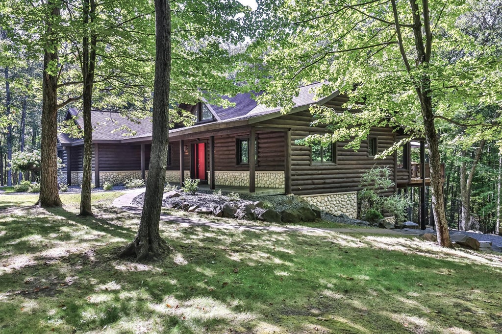 Minocqua privacy at the end of the road on 10+ acres of hardwood forest! This stunning 4,500 sq ft, 3+ bedroom, 3-bath custom log-sided home is packed with Northwoods charm. Built in 2005, it features maple and pine floors, half-log interior walls, and cathedral ceilings with log beams. A dramatic stone fireplace centers the open-concept living space, while the chef’s kitchen includes a stone cooktop enclave, breakfast bar, and pantry. The main floor offers two bedrooms, a den/office, sunroom, laundry/mudroom, and access to a huge 22x28 partially covered deck. The primary suite boasts a gas fireplace, walk-in closets, and spa-like bath. The finished walk-out lower level includes a bedroom, full bath, big rec room, bar, fun, fieldstone gas fireplace, and flexible rooms for guests or hobbies. Relax on the screened porch, explore wooded trails, or garden in the fenced backyard. Room for additional buildings, this is a rare mix of seclusion, space, and rustic elegance.
