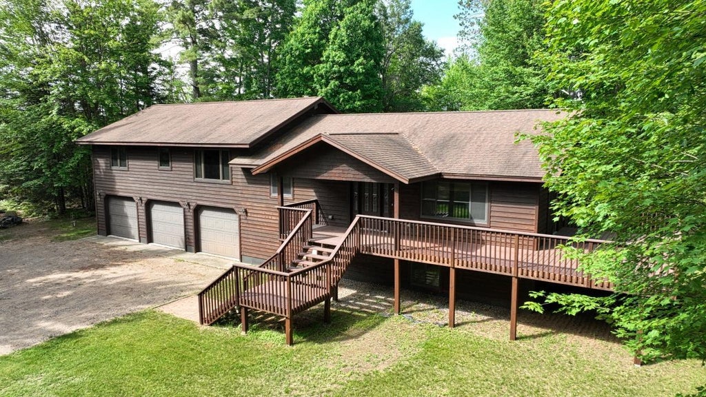 This exceptional home offers a clean & sophisticated living experience w/ high-quality features throughout. Upon entering this 4 BD, 3.5 BA home, you will immediately appreciate the essence of Northwoods living. The interior boasts maple hardwood floors, pine tongue & groove vaulted ceilings, 2 wood-burning stoves, & a primary ensuite w/ beamed ceilings, walk-in closet, tiled shower, & a whirlpool tub, providing a personal spa-like retreat. The living room gives convenient access to an enormous wrap-around deck, perfect for add’t entertaining space or enjoying the serene views & sounds of nature on the 2 ac of wooded & private land. There are generous room sizes, kitchen w/ maple cabinetry, ample storage, lower-level rec room w/ wet bar & in-floor heating & a large 2.5-car att. garage also w/ in-floor heating. The home was restained in 2024, a tankless water heater in 2025 amongst various other upgrades/updates over the years. Pride of ownership is evident in this must see home!