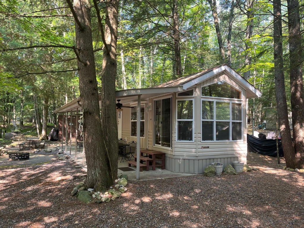 Indian Shores - Here's your chance to own a permanent site and spend the summer months at Indian Shores on Tomahawk Lake. This is a 2007 model year home and features 1 bed/1bath with a covered porch. With this property you own the home and the lot - so no need to pay annual lot rent or risk losing your spot. The property features great landscaping, a firepit area, and a shed to store extra toys right on site. Enjoy the covered porch with ceiling fans on those summer nights while you sit by the firepit. This unit is clean and ready to go. Indian shores is a great place to enjoy spring/summer/fall....you can enjoy walking, swimming at the onsite pool, hanging out at the beautiful sand beach, or countless miles of bike trails nearby. Shopping and restaurants are minutes away in Minocqua! Home is being sold furnished.