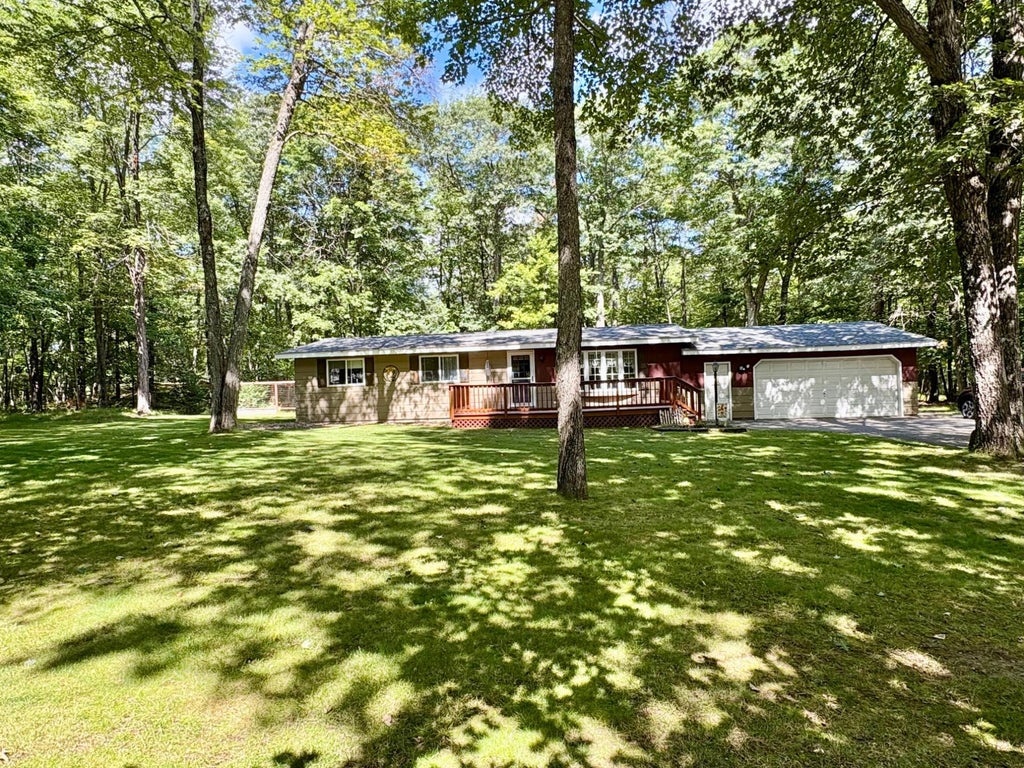 This very well-maintained ranch home with 3 bedrooms 1½ baths, 2 car attached garage, paved driveway & fenced in back yard is located on a dead-end road on a 2.34 acre private wooded lot. The kitchen has beautiful cherry cabinets, newer stainless-steel appliances, & is open to the dining area. The entry has tile flooring with a lovely formal living room to great your guests. The family room enjoys an electric fireplace, ½ bath, & screened in porch leading to the back deck with a pergola, & colorful flower garden all fenced in. There are 3 bedrooms with solid 6 panel doors & closet doors & a full bath with a separate jet tub & shower. The lower level features a large rec room, laundry room & workshop. The attached garage is 25 x 24 & has a workbench, & automatic door opener. This property has 200 ft of shared deeded access to South Pine Lake just down Highlander Rd. A new roof was put on in 2023.