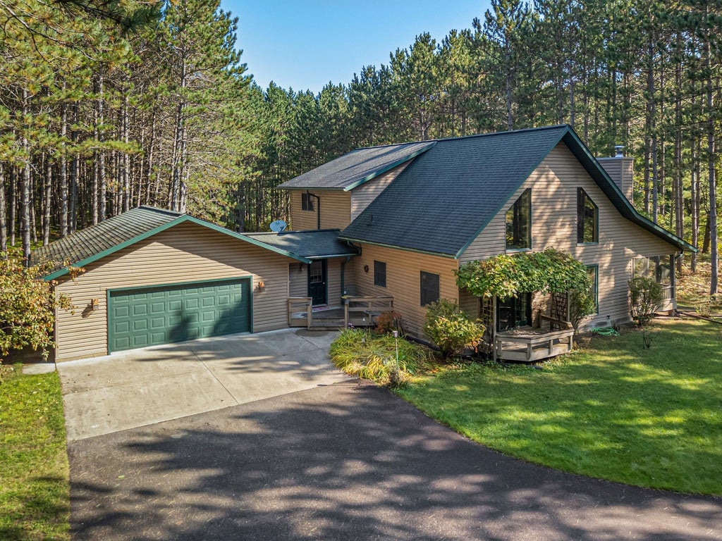 Beautifully designed 3 BD, 3 BA home that offers a perfect blend of comfort & functionality w/ an emphasis on privacy. Home showcases cathedral ceilings, abundance of windows that invite natural light, full length screen porch offering a peaceful setting for outdoor enjoyment & the rustic charm of a wood burning F/P. The kitchen has knotty alder cabinets & island that’s perfect for meal prep & entertaining, loft that overlooks the great room & features the primary suite, while the lower-level walkout w/ rec room & hobby room, is ideal for projects or leisure activities. Dedicated mudroom & main level laundry add to the functionality to the home. The exterior is just as inviting w/ a deck featuring a trellis laced w/ grapevines, landscaped grounds w/ garden beds, apple trees, raspberry brushes & stone waterfall that adds a serene touch to the landscape. For convenience/storage, 2 car att. garage & extra heated barn/storage bldg. Fully furnished providing a seamless move in experience.