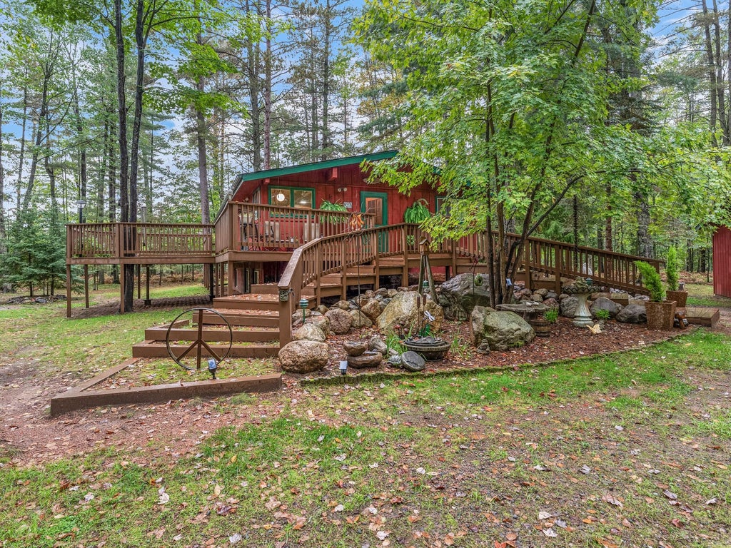 Enjoy the best of both worlds with this beautifully maintained 3 bed/2 bath home on nearly 4 acres. Surrounded by nature & frequent wildlife, the setting feels private & peaceful, yet just minutes from town. Inside, you’ll love the open-concept design w/ knotty pine walls and ceilings, giving the home a cozy Northwoods feel, while recent updates, including a gas fireplace, drilled well, furnace & appliances, make the home move-in ready. The main level offers two bedrooms w/ built-in storage, full bath, and an inviting kitchen/dining/living space. The finished lower level adds even more room with a spacious family room, third bedroom, full bath, and laundry/utility area. Outside, the expansive deck, level yard, circle drive, and generous acreage provide plenty of room to relax, play, or simply take in the quiet beauty. A wonderful blend of comfort, updates, and location, ready for you to move in and enjoy.