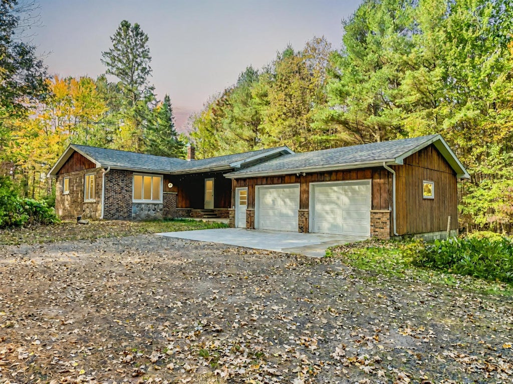 Discover the possibilities with this solid 3BR, 1BA home on 40 acres in the Irma area. The property offers a mix of hardwoods, established trails, and nearby access to the snowmobile trail—perfect for outdoor recreation. The brick and stone front welcomes you into a spacious layout featuring a large living area, a mudroom with potential for a main floor laundry or second bath, and a full unfinished basement ready for your ideas. Recent updates include a new drilled well. Outside, enjoy a large yard, a storage shed, and a 2-car attached garage. With fresh flooring and paint, this home can truly shine. A great opportunity to create your dream retreat with privacy, acreage, and year-round adventure at your doorstep!