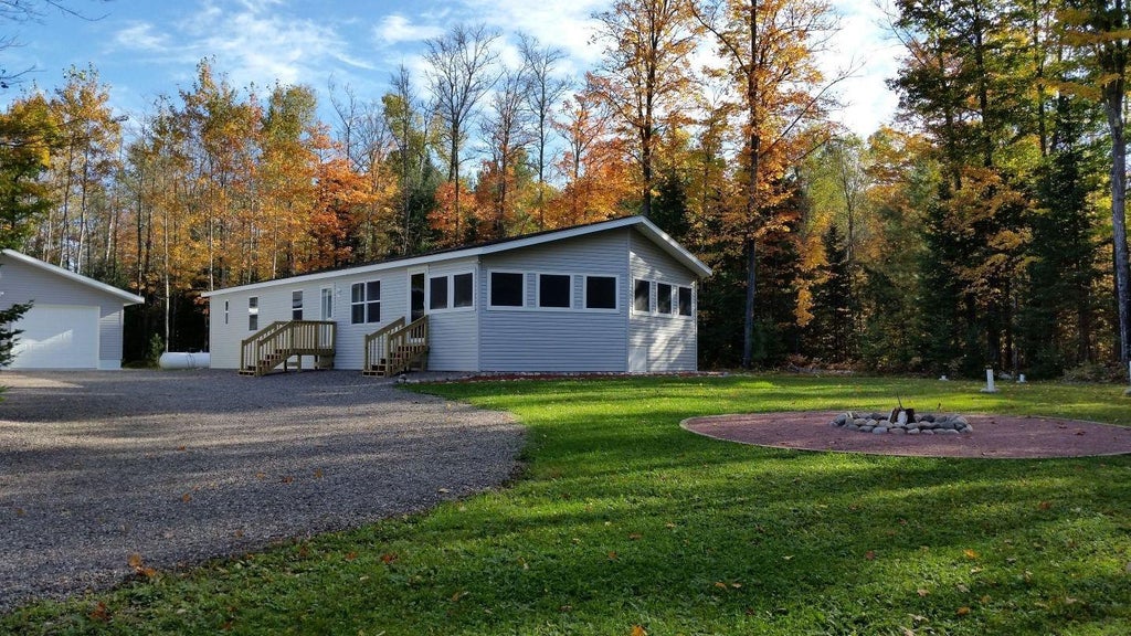 Updated 2006 Wick Manufactured home on concrete slab, insulated crawl space with commercial crawl space dehumidifier. 2 bed, 2 bath with bonus room and large enclosed porch all on 1.38 acres. 28x28 2 car insulated and heated garage with a floor drain. Many updates: new siding, new appliances, new paint, new flooring/carpet throughout, new toilets, new ceiling fans, new storm doors, and much much more. Frontier phone and internet. Generac 14KW whole house backup generator. Close to many lakes and trails. Located 12 miles east of downtown Eagle River. Surrounded by national forest - no neighbors