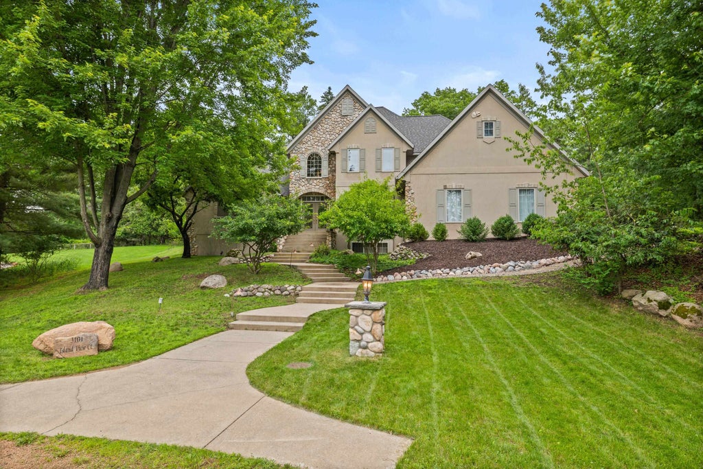 This beautifully maintained 4-bedroom, 4.5-bath home on Stevens Point’s desirable East Side offers an impressive blend of space, comfort, and functionality. The main living area features cathedral ceilings, a dramatic two-story fireplace, and a wall of windows that flood the space with natural light. New LVP flooring leads to an updated deck, perfect for relaxing or entertaining. The kitchen is both stylish and practical, with ample prep space, a walk-in pantry, two sinks, dual ovens, and open-concept flow into the dining and living areas. The main level also includes a half bath, a spacious laundry room, a mudroom, a large office, and a luxurious master suite featuring two separate master bathrooms—each with its own walk-in closet. Upstairs, you’ll find a bright loft space, an additional bedroom with a walk-in closet, and a full bath. The lower level expands the home further with a spacious media room, two more bedrooms—each with walk-in closets—another full bath, and unfinished space ideal for storage or future customization.
