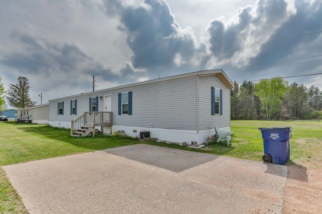 Move-in ready 3-bedroom, 2-bath mobile home (16-ft x 80-ft) in Deer Trail Village in Mosinee! Built in 2019 by Champion Home Builders, this one-owner home offers modern finishes throughout with distressed white cabinetry, stainless kitchen appliances (refrigerator, gas range, microwave and dishwasher), large stainless sink with garbage disposal, and open-concept living, dining, and kitchen spaces. Built-in shelving and room divider - adding a nice aesthetic touch, and great natural light throughout (with modern wooden blinds for most of the windows). Owner's suite with private full bath and a walk-in closet. Modern vinyl flooring extends throughout the entire home. Two secondary bedrooms down the hall with main level laundry hook-ups and a primary full bathroom. Quiet location with wooded views from the back. The lot rent is $350 / month, which includes parking, garbage and recycling, and water / sewer (private well / septic). Internet is separate (paid by each owner) - both charter and TDS available in the area. WPS is separate (paid by each owner). Schedule your showing today!