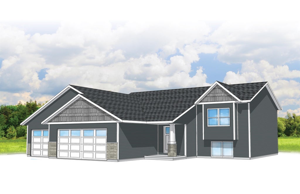 Discover comfort, style, and functionality in the Pecan D1 model by Denyon Homes, part of the popular Neighborhood Series. This beautifully designed bi-level home features 3 bedrooms, 2 bathrooms, and 1,405 square feet of living space. With its distinctive double gable exterior, this home offers curb appeal and a modern touch. Step inside to an open-concept main level that includes a spacious kitchen and dinette area, complete with custom soft closing cabinetry, an island for added prep space, and built-in appliances including a dishwasher and microwave. The main level also features a convenient laundry room, a comfortable owner's suite with a private bathroom and walk-in closet, a second bedroom, and a full main bathroom. The welcoming entryway is designed with functionality in mind, offering a built-in footlocker and direct access from the attached garage. The lower level expands your living options with a finished third bedroom and is framed and plumbed for a future family room and bathroom, allowing for easy customization down the road.