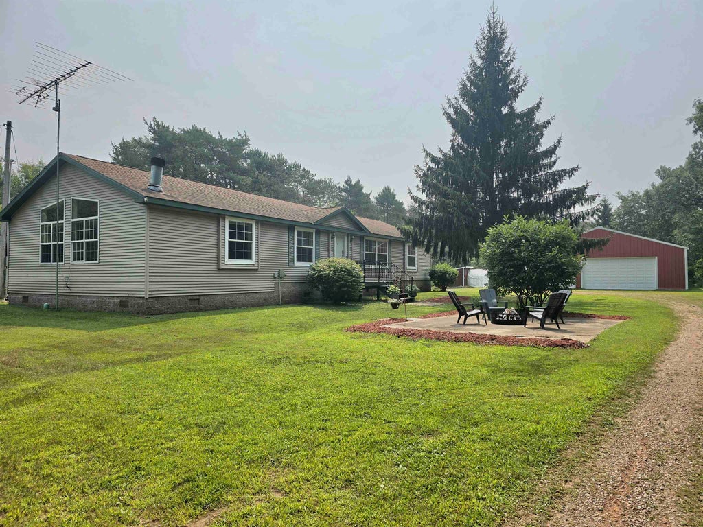 Dreaming of Country Living? Your 20-Acre Retreat Awaits! Have you ever imagined waking up surrounded by the sights and sounds of nature, with room to roam and endless possibilities at your doorstep? Welcome to your own private paradise—just 30 minutes from Stevens Point, 21 minutes from Plover, and 24 minutes from Waupaca. Tucked away down a long, private driveway, this beautifully updated 3-bedroom, 2-bath home offers peace, privacy, and immediate move-in readiness and low maintenance with the 10 year old roof. Out front, a cozy firepit area with seating sets the tone for relaxing evenings and entertaining guests under the stars. But the true magic lies beyond the house—20 acres of natural beauty featuring a walking trail, open fields, rolling elevation, and abundant wildlife. Whether you dream of starting a hobby farm, setting up hunting stands, or simply finding a quiet escape from the hustle and bustle, this property delivers.