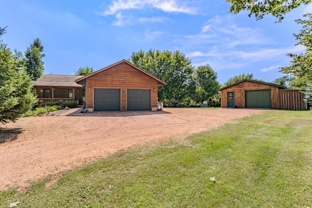 Here is your little bit of paradise! Custom designed and built in 2003, this 3 bedroom ranch home has your necessities with rustic flair, on 40 ACRES! Entering this home you will immediately notice the quality of craftmanship. Laminate flooring for easy upkeep, Alder Wood cabinets, granite counter tops, Gas stove and dishwasher new in 2024, and a great island space. The well thought out kitchen included a separate butler’s pantry for all the gadgets, storage, and extra prep space. The vaulted ceiling accented with knotty Spruce and beams-some harvested off the property! The dining area leads to the deck, and adjoins to the living room. Giving you a very open feel! The main floor has your laundry and a mud room area coming off the 2 car attached and insulated garage. 2 of the bedrooms on the main floor with a full bath. The primary bedroom has access to the bathroom with its separate whirlpool tub, double sinks, and standalone shower.