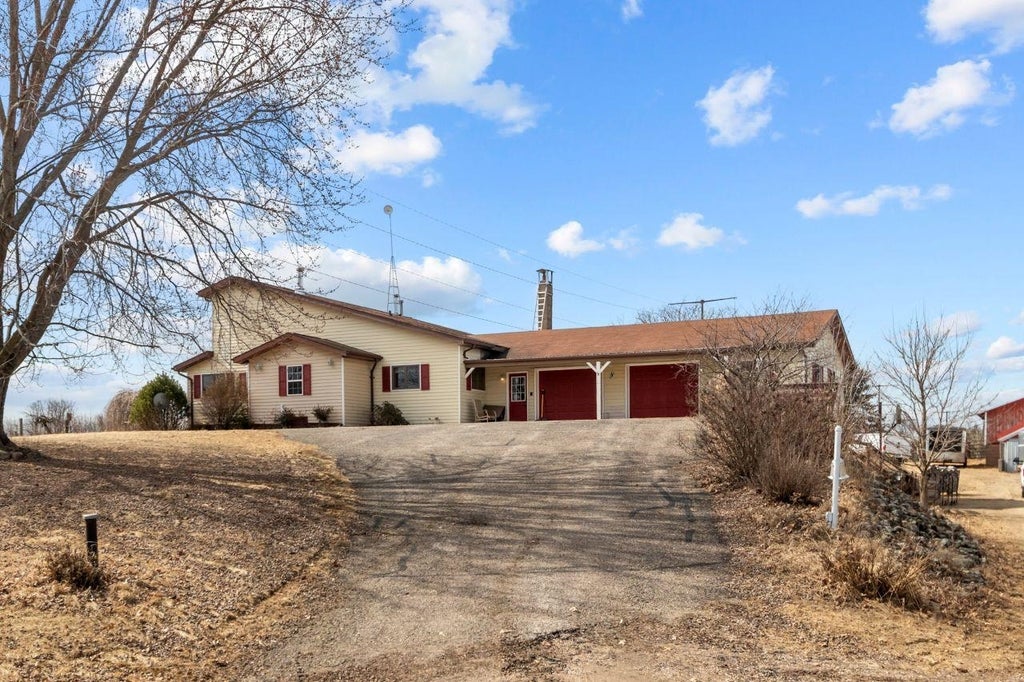 This incredible 69.5-acre property is a true gem! The living room features a stunning cathedral ceiling w/wood beams and a charming wood stove. A beautiful 4-season room has large windows allowing in natural light. The spacious kitchen has abundant cabinetry, a large breakfast bar, and a 6x6 pantry. There is an adjacent dining area for larger meals. The primary bedroom has a full bath and a walk-in closet. On the main level, you’ll also find another bedroom and a convenient half bath w/laundry. The walk-out lower level features a vast family room with a wood stove, two additional bedrooms, and a full bath. There is an attached 4-car garage, a horse barn, a machine shed, and an indoor riding arena. This is a great property for horse enthusiasts and those who enjoy the great outdoors.