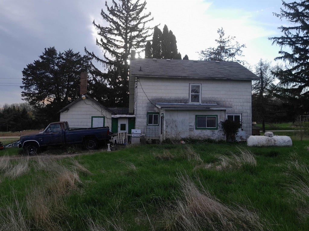 The home is in disarray and is not livable. All utilities are off; the well and septic are in unknown condition; proceed with caution. The value of this 2 acre property is in the pole barn and shed. The pole barn is 30x70, per Seller, and has electricity and a dirt floor. The 20x30 shed has concrete block walls. The property and contents are being sold as-is. Seller reserves the right to remove any items, but currently the property includes a large variety of non-working items: 4 tractors, 4 boats, 5 cars, 2 trucks, 2 riding lawn mowers, a plow, and a pop-up camper. Cash buyers or vacant land loan. Home exterior is asphalt/slate. Land use classification/zoning is agricultural homesite.