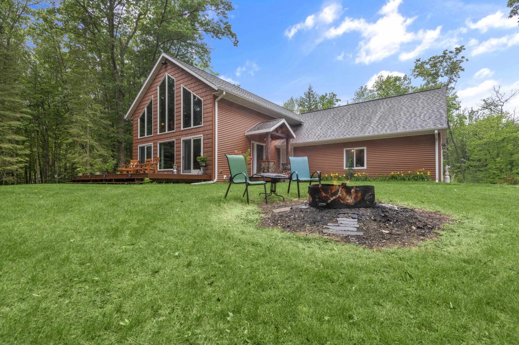 Venture North to this beautiful property nestled across from scenic White Potato Lake. Located on ATV and snowmobile trails, this stunning home showcases massive floor-to-ceiling windows and a vaulted ceiling. The main floor features a cozy primary bedroom and bathroom, a spacious laundry room, and a half bath. Relax by the massive stone fireplace in the open living area. The fabulous kitchen, complete with all appliances, is perfect for entertaining. Upstairs, the large loft bedroom has its own full bathroom, plus two additional rooms for extra sleeping space. The property also includes a 2-stall attached garage DUE TO CELLCOM VOICE OUTAGE, ALL INQUIRIES TEXT LISTING AGENT