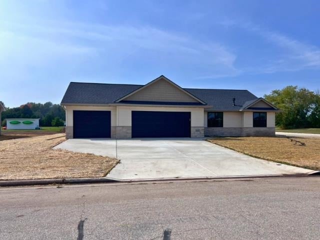 Sun-filled ranch w/ character & many features over & above a completed construction including finished 3-stall garage, basement access from garage & a transferrable lifetime window warranty. Sitting on a spacious lot & offering an open-concept layout w/ soaring ceilings & beautiful LVP floors. Stone surround fireplace w/ mantel in living room. Stainless steel kitchen appliances & gas stove. Enclosed range, granite counter tops, large center island & tiled backsplash. Primary suite has huge walk-in closet & bath w/ double vanity & large shower. Solid wood doors throughout. LL is partially stubbed for future finishes w/ egress windows. Quality materials & craftsmanship w/ a fabulous layout. 1yr limited builder's warranty. Final grade. Central AC.