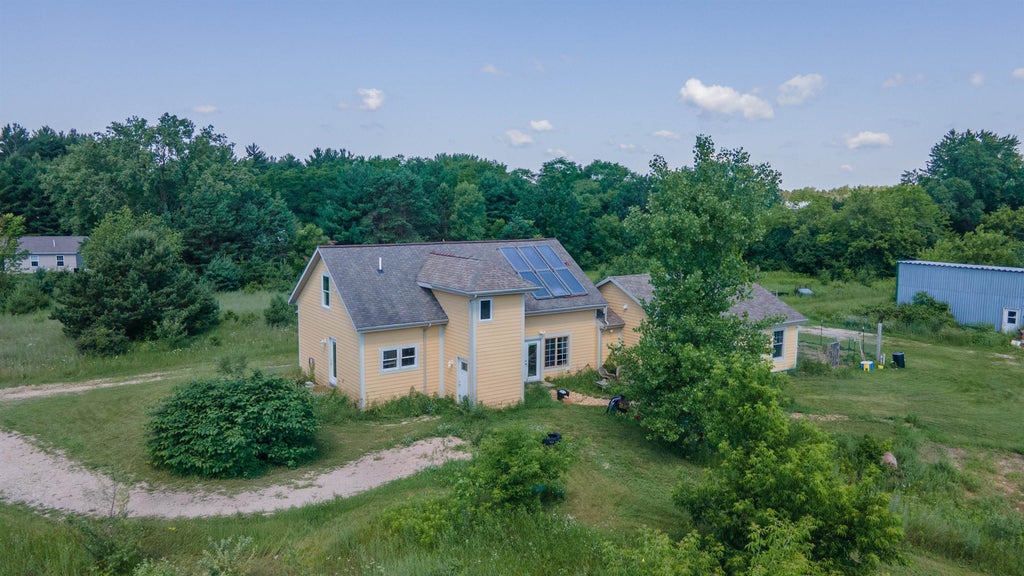 Hobby farmers, renewable energy enthusiasts, preppers, off grid livers, this one is for you! Set back off the road on 10+ acres awaits this unique property and home. The home features nearly 2400 sq feet of living space. Large kitchen, 2 large living areas, additional small kitchen/bathroom. Upstairs provides a separate access to another large living/bedroom space with its own bathroom, kitchen laundry area. The home is entirely energy efficient & off grid (please refer to the renewable energy description in associated docs.) But could easily be hooked up to natural gas if one chose to. 10+ acres of organic land. Would make great small tillable/pasture grounds. Additionally there is a large, spray foam insulated garage and carport supporting all your storage needs! Call today!