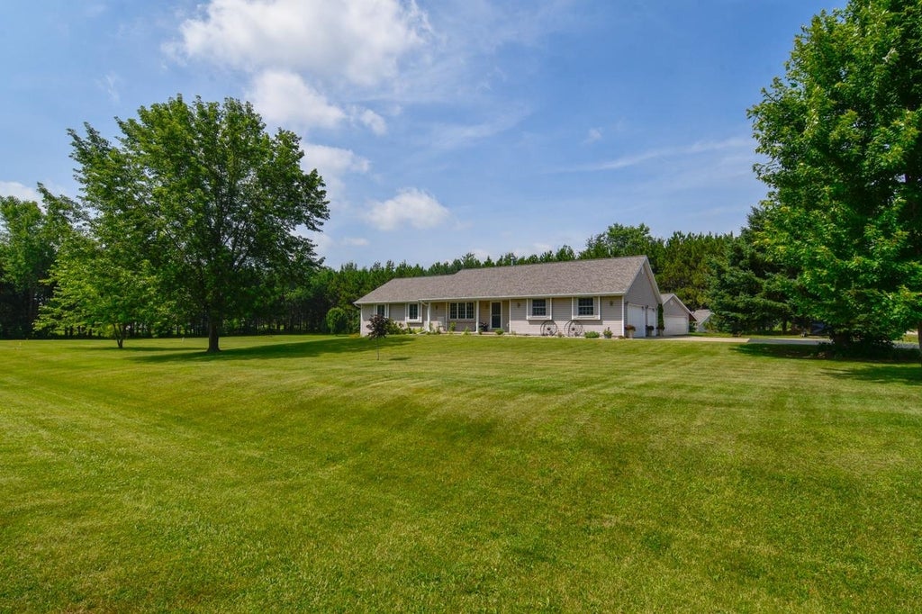 Amazing find! 4 bed 3.5 bath ranch home in desirable Pulaski School District. Primary ensuite with two additional bedrooms on first floor. Updated kitchen, gas fireplace and laundry room finish the main level. Lower level features an additional full bath, bedroom along with a playroom and living room. Large heated detached garage with concrete drive all situated on 1.5 acres.