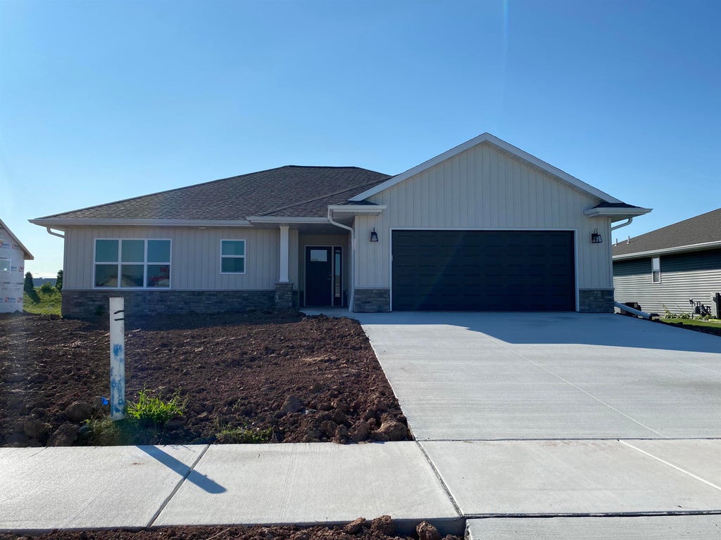 This classy 2 bedroom, 2 bath condo has a sunroom and offers the perfect space for entertaining or relaxing! The kitchen is stunning with a dual finish of Treasure stained lowers and Tanglewood painted uppers. Carrara Miksa quartz countertops & Arabescato Venato backsplash add an elegant touch. The great room features a gas fireplace beautifully surrounded from floor to ceiling with Casa Di Sassi Bianco Blend stone. The primary suite offers a spacious walk in closet and ensuite bathroom with dual sink vanity accented with Trigato Quartz countertop and gold fixtures & hardware. Monthly association fee is $175.00 for lawn care & snow removal. Basement offers full bath rough-in and egress window for future living space. ALL PHOTOS SIMILAR TO.