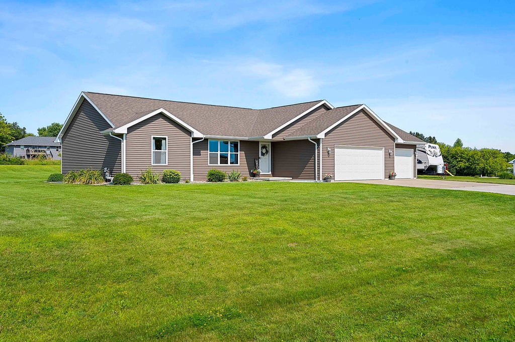 The perfect home - 15 min from GB in Lux/Casco School Dist. 1.5 acres! Quality home built in 2017 -well cared for! Open concept with large kitchen island with seating and a good size dining area with a patio door to the back yard. Beautiful cabinets, vaulted ceilings. The primary bedroom with ensuite is the opposite side of the house from two other bedrooms and another full bath. Main floor laundry and a huge, insulated/heated garage. The home has a very smart layout. All appliances are included. The lower level has a comfortable den, another bedroom, and another full bath along with plenty of storage space. Move in ready! You will be proud to own this beautiful home. Offers will be presented as they are received. Please allow 48 hours for acceptance. Thank you.
