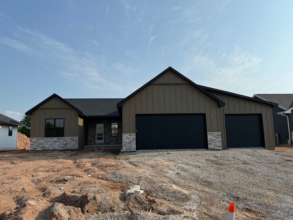 Welcome home to this spacious 3 bedroom, 2 bath ranch located in the highly desirable Bedford Heights subdivision in Bellevue! The kitchen boasts stunning custom maple, caramel stained cabinets accented by Calacutta Alto Quartz countertops & an Arabescato Venato natural stone backsplash. The kitchen opens to the main living area complete with a 50" Simplifire Allusion Platinum Linear Electric fireplace surrounded by Ardesia Kwik Stack stone and a cathedral ceiling featuring a gorgeous caramel stained beam. Terra Timber Meadow Sage LVP can be found throughout the main living areas. The primary suite features a large walk in closet & bathroom with dual sink vanity. Lower level is stubbed for full bath & has an egress window for future expansion.
