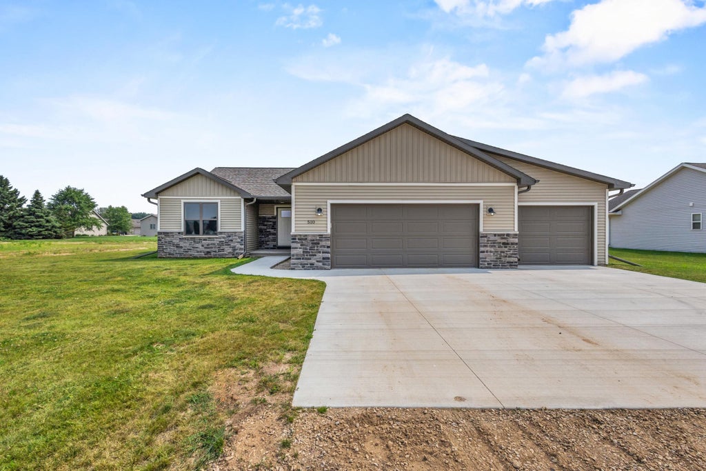 Welcome to this stunning newly constructed 1,655 sq ft Energy Star certified home in the City of Brillion! This popular split-bedroom ranch offers 3 bedrooms and 2.5 baths with an inviting open-concept layout that seamlessly connects the living, dining, and kitchen areas. The kitchen is designed for both style and function, featuring a center island and a spacious walk-in pantry with outlets, counter space, and room for an additional refrigerator or freezer. The primary suite includes dual sinks and a walk-in closet for added convenience. Enjoy outdoor living on the patio just off the dining area. The lower level is ready for future expansion with an egress window and is stubbed for a bathroom. A 3.5 car garage completes this beautiful home, offering ample space for vehicles and storage.