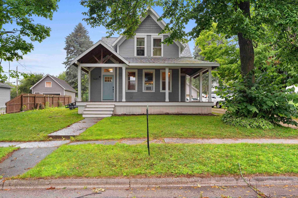 House has been completely remodeled and resided in the past 3 years. This beautiful home has bamboo hardwood flooring throughout with the exception of marble flooring in the bathrooms. Two bedrooms with loft area and a large master bedroom. Brick accents and floor to ceiling three-panel glass door in kitchen opens to large backyard. Open concept living/dining/kitchen with electric fireplace and handy pantry. Treehouse included! Relax on the covered wrap around front porch. Additional 10x10 storage shed in back yard. One block from Lake Michigan and easy access to the sandy beach.