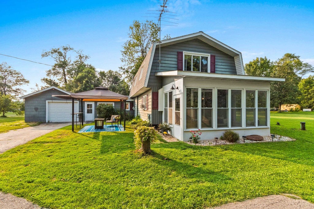 Nestled in the heart of Oak Orchard, approximately 25min from Green Bay enjoy great views of the water on one acre. Feel the breeze flow from the Bay while watching the sunrise in the 3 season room. Office/den & 1 bedroom on the main floor. Upstairs host two large bedrooms. Newer windows. Breezeway that leads to garage. Backyard contains numerous mature fruit trees and a chicken coop. Several public boat launches near by. Additional 100' lot with a driveway and shared well will be included ( parcel # 03434260151P )