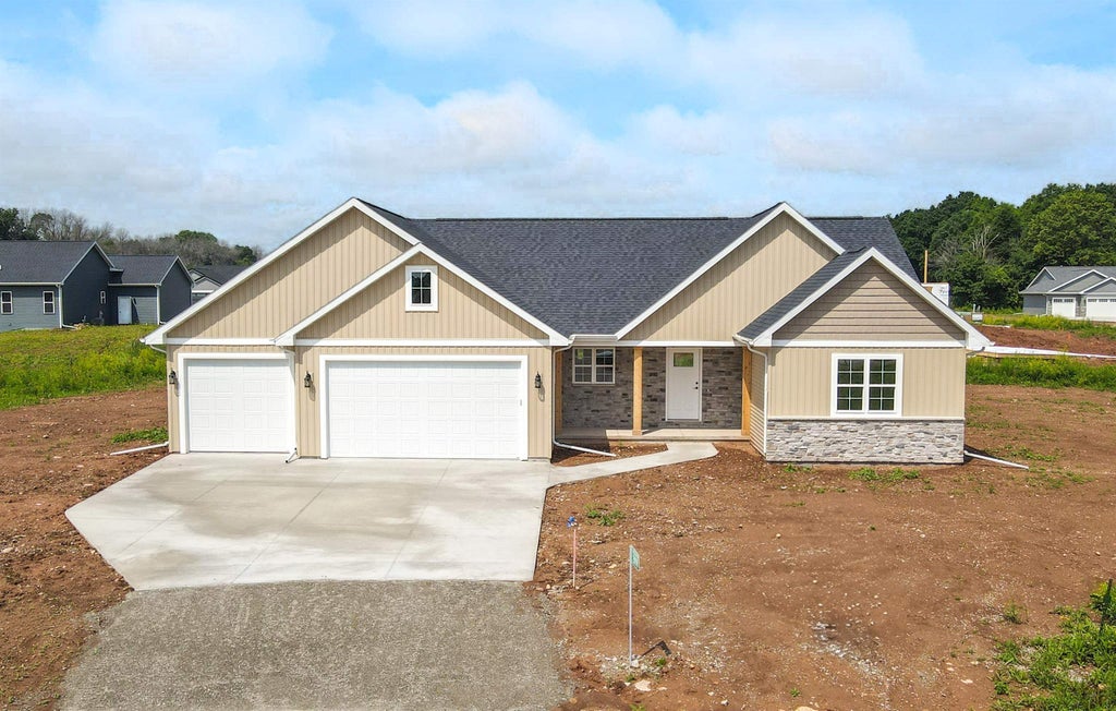 This tastefully designed 5 bdrm 3 bath split bdrm ranch from Oakwood Homes offers an amazing open floor pan that makes the interior space feel bigger and brighter. Washed wi/windows the inviting interior features a volume ceiling from the oversized GR to the eat-in kitchen. This combination space is perfect for entertaining or just relaxing. Stocked w/cabinetry the kitchen will be the hub of the home w/full appliance package, walk-in pantry, and lg center island. Enjoy split bdrm design w/primary suite offering dual vanity, walk-in closet & tray ceiling. Additional features include: mudrm, separate FF laundry, finished LL w/rec rm, 2 additional bdrms, 3rd full bath, and 3 car garage.