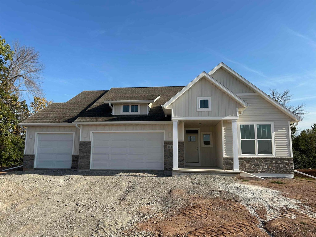 This beautiful 3 bedroom ranch is built by Schmidt Bros. Custom Homes, Inc. It features 9' high ceilings, white kitchen cabinets, granite countertops throughout, white painted doors and trim, a gas fireplace with stone face and a back covered porch. The primary suite includes dual sinks, a 5' shower and a walk in closet. The basement is stubbed in for a future bath, and includes an egress window and radon mitigation system. Concrete driveway, patio and sidewalk included. Estimated completion date is November 7, 2025.