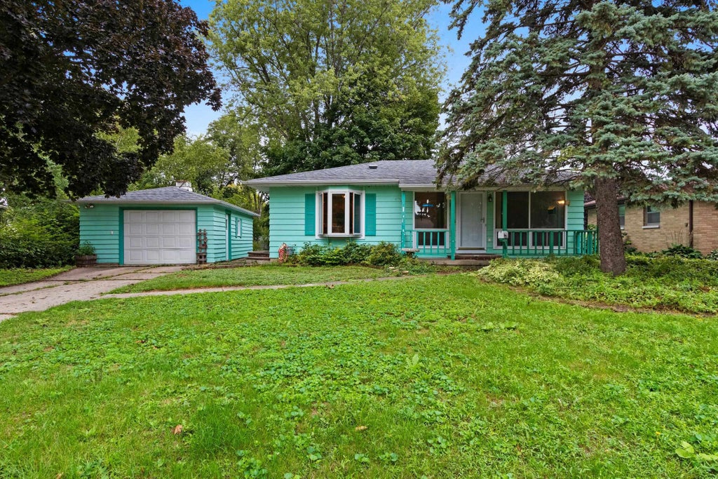 One story ranch, on a quiet street, less than 1 mile from Lambeau! Nice size kitchen with raised oak cabinetry and pantry. Window seat, island and dining space make this area cozy and yet open feeling. Natural light pours into the windows on the front of the home, with a covered front porch to enjoy a quiet night. A large bathroom, spacious living room and 2 bedrooms complete the upstairs. The basement is waiting for your finishing touches. There is even a shower and new toilet that is waiting for installation. Large yard, some newer windows and 50 year roof shingles. Property is being sold "as is - where is". Say goodbye to renting and hello to home ownership!