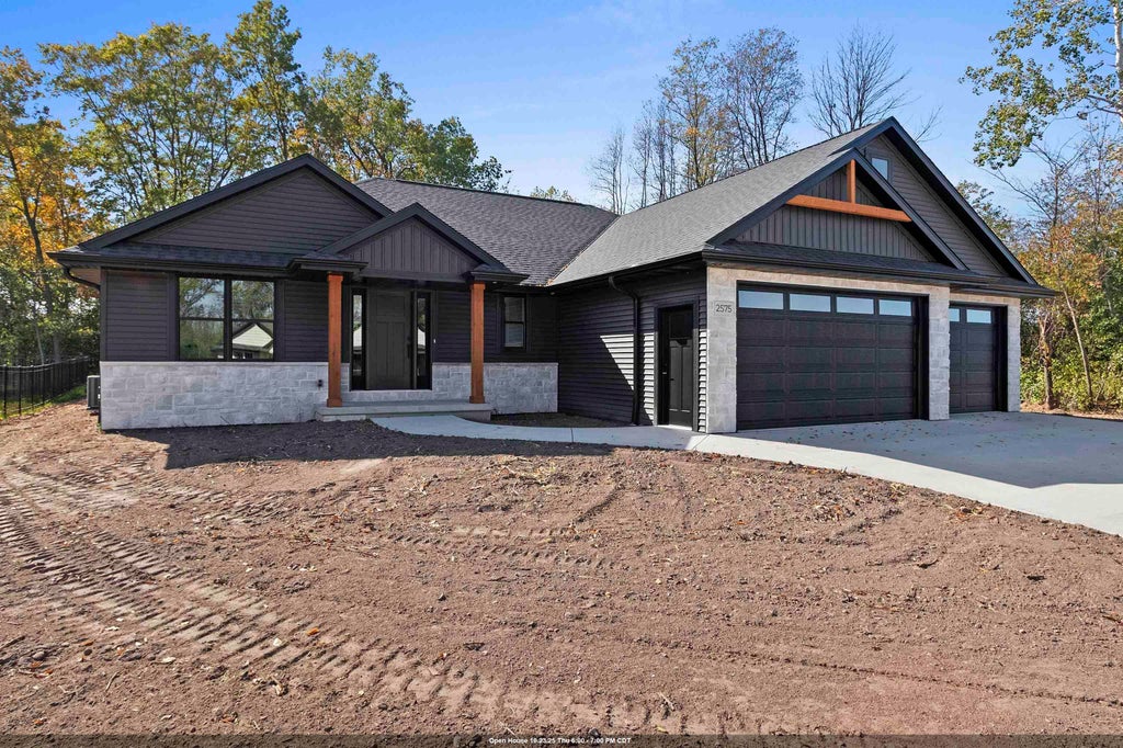 Step into this stunning new construction ranch home with an open-concept layout ideal for everyday living and entertaining. An inviting living room boasts a gas fireplace for cozy evenings opening to the kitchen with large island walk-in pantry and dining area. The primary suite is a retreat with its walk-in closet double vanity and a beautifully tiled shower. Convenient split bedroom layout with 2 additional bedrooms and full bath. Set on over a half acre outdoor living is made easy with a concrete patio with gas hook-up for grilling. Garage is insulated and drywalled. Basement stubbed for a bathroom and offers plenty of potential w/ an egress window ready for a future 4th bedroom. In the desirable Mystic Creek subdivision and West De Pere School District.