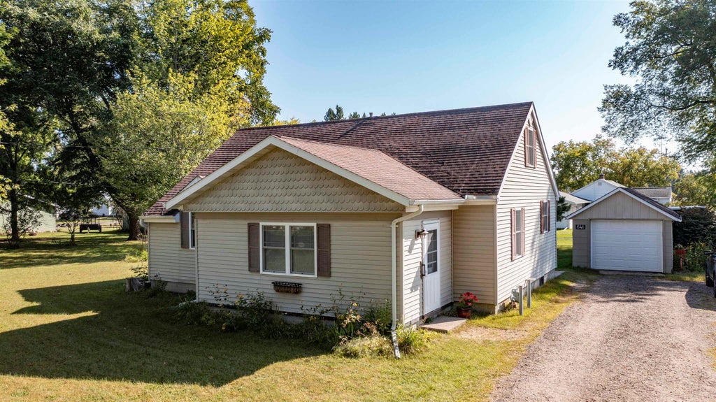 Charming 1.5 story Cape Cod home in the heart of Wild Rose! This 2-bedroom, 1-bath home offers 1,467 sq ft of living space with a spacious bonus area upstairs—perfect for a home office, guest room, or hobby space. The updated bathroom features a custom sink and mirror for a modern touch. Enjoy the convenience of a 1-car garage and an unfinished basement with ample storage potential. Situated on a generous lot that includes 3 city parcels, there’s plenty of room to garden, play, or expand. A 10x8 garden shed is included for additional outdoor storage. This property is full of potential and ready for your personal touch. Don’t miss your chance to own this lovely home in a quiet, small-town setting!