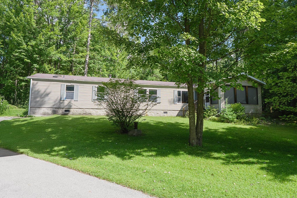 Enjoy the country living in this wonderful large mobile home nestled on .6 acres in the woods of the Machickanee forest. This 3-bedroom, 2 bath home features a large master bedroom with a walk-in closet and master bathroom with a soaking corner tub and shower. Enter the home through the back porch, ideal for hanging coats. Main level laundry and split bedrooms is a plus! The home allows for excellent daylight with the 3 south facing skylights. Enjoy the fall evenings relaxing on the front screened porch. The 2 car detached garage is ready for the hobbyist with the tall ceilings and spacious loft to satisfy the storage needs. Please allow 4-hour notice for showings.