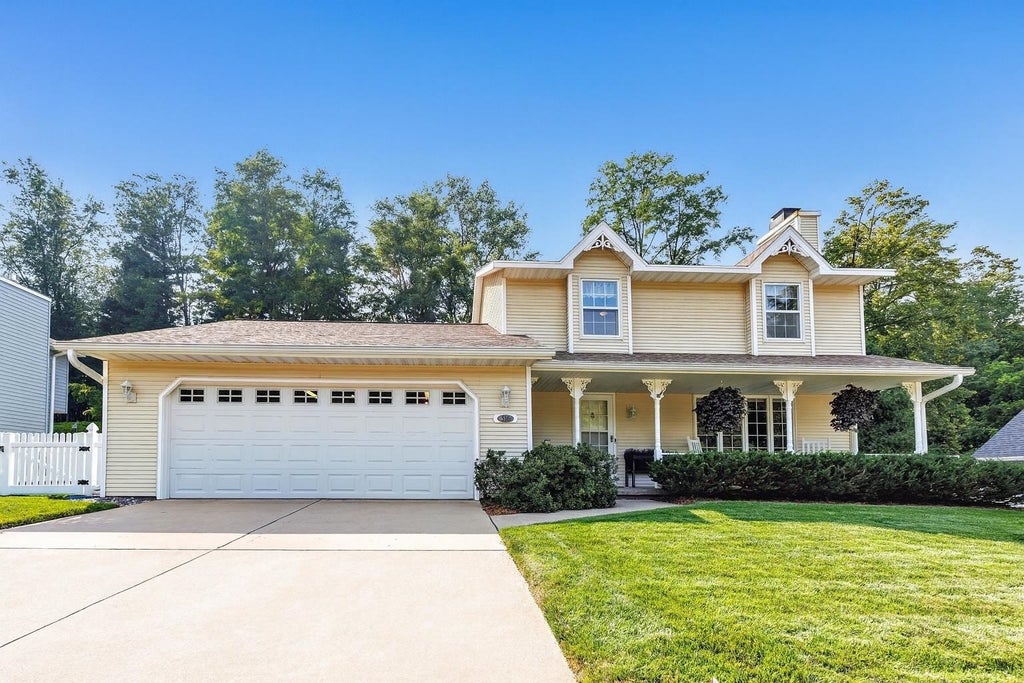 Imagine coming home to this cozy 3-bedroom, 2.5-bath retreat, complete with a huge 4-car garage & a finished basement featuring a bar, game area & rec space for fun & gatherings. Upstairs houses all 3 bedrooms including a primary suite with walk-in closet & bathroom. Updates include A/C ('23), refreshed bathrooms, newer appliances & a roof with gutters/leaf guards ('14). Step outside to your private, fenced backyard with a deck and patio, a half-wooded escape—perfect for summer evenings grill-side. Or spend quiet mornings sipping coffee on the front porch. Endless possibilities of storage with the 4 car tandem garage & workshop area. Meticulously maintained, this home effortlessly blends comfort, style & room to grow. Some photos virtually staged. Road work/driveway to be complete by 10/31