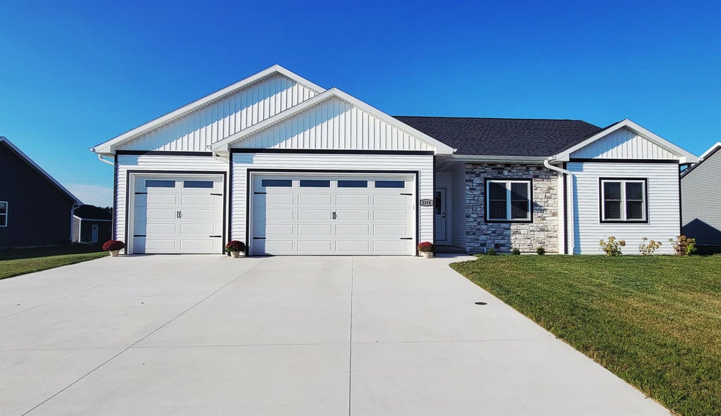 Beautiful ranch-style home located in a rapidly developing subdivision in Freedom, WI. Situated on a spacious half-acre lot with no neighbors to the back, this home offers privacy and peaceful outdoor living. Enjoy evenings gathered around the built-in firepit in the quiet backyard—perfect for entertaining family and friends. Inside, you'll find numerous upgrades, including a custom kitchen island, walk-in pantry, and upgraded countertops. The primary suite features a walk-in closet and a private bath with a dual-sink vanity.