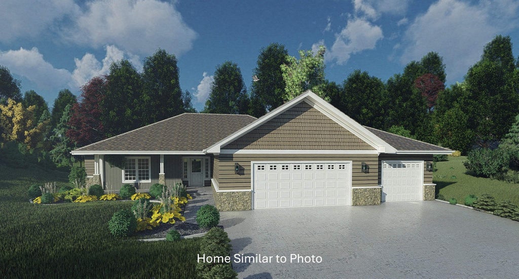 Charming 1,753sf ranch home, newly constructed in the Village of Pulaski, offers a thoughtfully designed split bdrm layout. Featuring 3 beds & 2 full baths, a covered lrg front porch w/porch posts, a welcoming foyer, & cozy LR w/gas fp & coffered plaster ceiling. Kitchen incl lrg island w/sink, custom maple cbnts, walk-in pantry, & SS dishwasher & microwave. Dinette opens to the backyard via patio doors. Master ste offers a generous WIC & private bath w/dbl sinks & walk-in shower. Convenient 1st-flr lndry room w/sink. Full bmst is ready for future customization, w/egress window, plumbing for future bath & has access to attached 3-stall grg. Exterior features horizontal siding, shakes in roof peak & brick accents per plan. Photos are similar but may not be exact. Virtual staging in photos.