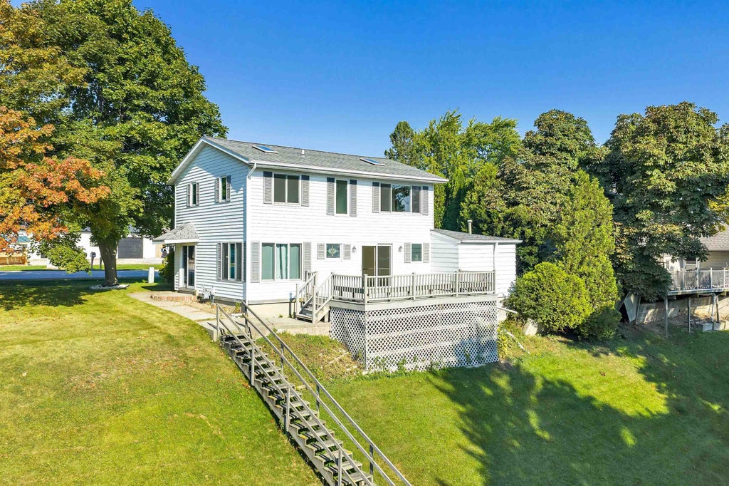 A rare find! Stunning slice of majestic Lake Michigan frontage just a mile from charming Algoma, home to Wisconsin's premier Lake Michigan fishing port! Cozy 2 bedroom/2 bath features lake views from each room! The massive primary bedroom w/double closets & ample windows could easily be split into 2 bedrooms to increase sleeping space. Kit/dining has patio doors leading to a maintenance-free deck ideal for grilling your freshly caught salmon, entertaining family & friends, or sipping your morning coffee while watching the famous Lake Michigan sunrises. Beach frontage includes a direct sight line to the iconic Algoma Lighthouse while hanging out at your private beachfront bonfire!! Fun sledding hill for wintertime fun as well! Saturday Open House!