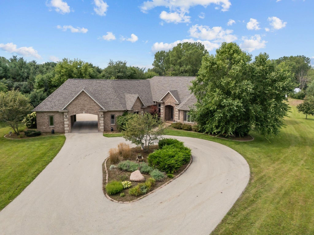 Welcome to this stunning ALL BRICK 5-bedroom, 3.5-bath ranch set on 7.15 serene acres. Inside, you’ll find Brazilian Cherry hardwood floors, solid maple doors, and granite finishes in the kitchen and bathrooms. The kitchen shines with new appliances, while the home is fully wired for surround sound. The split-bedroom layout includes a luxurious en suite with huge walk-in closets, a jetted tub, and tiled shower, plus two additional bedrooms and a convenient half bath with laundry on the main. The walkout lower level offers a spacious family room, two more bedrooms, a full bath, and abundant storage. Outdoors, enjoy breathtaking sunrises and sunsets overlooking a large pond, a brick breezeway, and a small barn with water, electricity, and pasture. Showings to begin September 25, 2025.