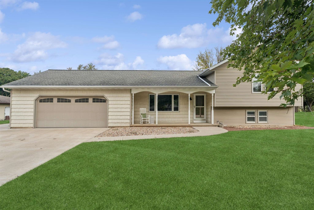 Exceptionally maintained one owner home on park-like setting. Welcoming front porch greets you as you approach. Foyer leads to light, bright and spacious LR. Kitchen features appliances package, snack bar and eat-in dining area. Upstairs boasts large master bedroom with walk-in closet and full bath access. Second bedroom is sure to please. The lower level has a finished half bath and a rec room with pellet stove that just needs finishing touches. Basement level has plenty of room for storage and steps leading out to the 2 car attached garage. The detached 20x26 garage is an added bonus. Updated roof, siding and more per seller. Call today before this one is gone!