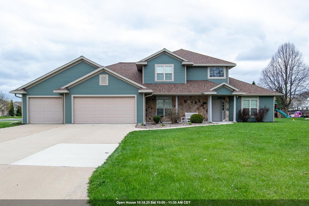 This is a condo mls#50308669 with no condo fees near East De Pere HS. New roof, furnace, siding & windows in the last couple of years. Updates include quartz countertops in the kitchen. The open concept makes it great for entertaining. The formal dining room is conveniently located next to the great room, with a cozy fireplace. The back door opens to a beautiful patio and yard. The 1st floor has a laundry room and half bath. The spacious main suite on the 1st floor has a relaxing Jetted tub, double vanity, stand-alone shower, and lots of closet space. The upper level has 3 more bedrooms and a full bath. The basement is full and unfinished. This condo sits on a corner lot with a private entrance. The 3-car garage has plenty of room for a boat or bikes. This home is close to schools & parks