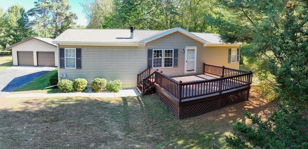 Tucked away on a private, wooded lot, this home offers peace and privacy while remaining close to conveniences. Enjoy outdoor entertaining on the spacious front deck, or relax in the master suite featuring a dual vanity and whirlpool tub. The heated garage adds comfort and function year-round. Updates include roof (2015), septic system (2015), furnace and water heater (2016), AC (2022), well (2024), water softener (2024). Note: County imaging is incorrect—new CSM attached for accurate details.