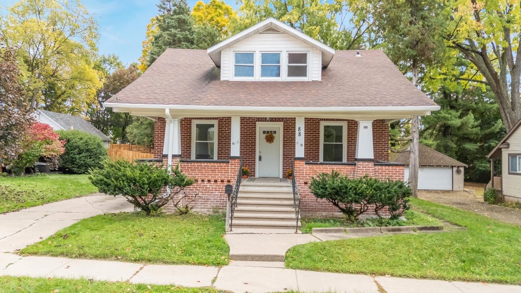 OPEN HOUSE SATURDAY OCTOBER 18TH FROM 11AM TO 1 PM. You will fall in love with this Craftsman-style charmer which is full of warmth, character, and modern updates. This 3-bedroom, 2-bath home features a large covered front porch, inviting living and dining spaces flanked by beautiful windows, wide baseboards, and updated flooring. The kitchen shines with quartz countertops, stainless sink and patio doors leading to the extra-deep backyard. A main floor bedroom adds convenience and flexibility. Upstairs offers two bedrooms with walk-in closets, full bath with tiled surround shower/tub, and a 4-seasons room overlooking the backyard--great for a home office or reading nook. The LL includes a finished bath/laundry room and room to grow with future finishing potential. 2 car garage.