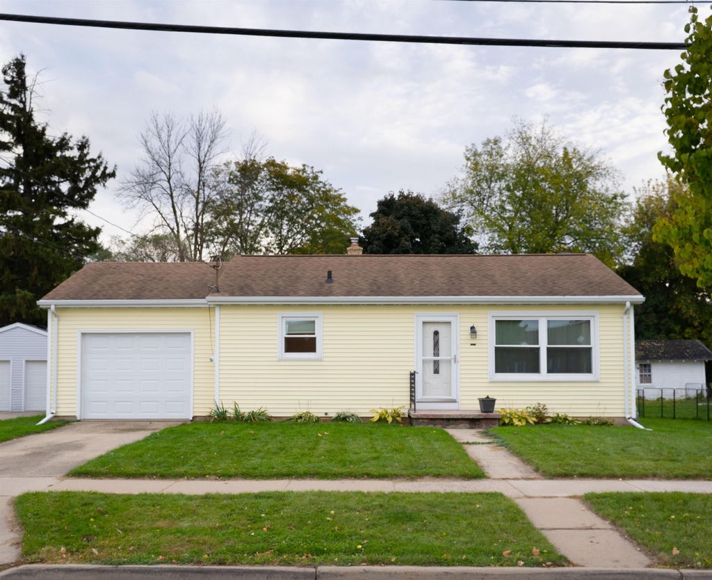 Buy this home because it is safe to have an attached garage and it has 2 Bedrooms, a full bathroom, Kitchen and a nice sized living room all on the main floor! a nice-looking full basement with a poured foundation is in great shape! (other than 1 small leak in heavy rains at 1 basement window, just needs replacing.) all main floor windows were updated in 2011 along with the siding and roof! There is hardwood flooring under the carpet in the living room and bedrooms! A few updates to make this your own and this will be fabulous. Great easy floor plan in a lovely area with the Nice and LARGE back yard you always wanted! as is. This can be yours!