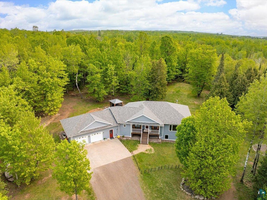 There is space for everyone! This beautiful 5 bedroom/3 bath home is just minutes from town on a 10 acres setting. Enjoy the wooded views and gas fireplace from the comfort of the living room. The updated open concept kitchen is spacious with granite counter tops and center island for gathering. On the main level you also have an office area, 2 bedrooms, laundry, mudroom and attached garage. Lower level is a walkout with 3 bedrooms, bath and a large family room. There are 2 additional bonus rooms. Outdoor space has updated decking, new slab, and new hot tub and gazebo. The roof, siding and boiler are newer! Don't forget about the additional 54x40 dream garage! There is room for all of your toys and it is partially heated and insulated.