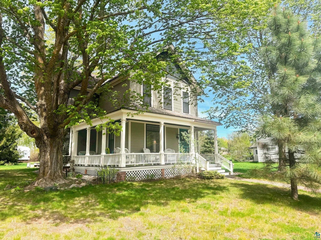 Nestled in a peaceful and highly sought-after Washburn neighborhood, this elegant Victorian Queen Anne home beautifully marries historic charm with modern convenience. You'll be captivated by its large, ornate wrap-around porch, the mature pear, apple, and plum trees, an impressive black maple, and a stately and unique long-leaf pine gracing the yard. Inside, custom chandeliers and professionally installed new wallpaper (2024) highlight a stylish and meticulously maintained interior. Four bedrooms and two bathrooms, plus a library sitting room, with custom built-ins, and formal dining room provide ample space for your any need. Peak glimpses of Lake Superior from the primary bedroom. Enjoy the Washburn lifestyle with Lake Superior, dining, shopping, and excellent parks all within walking distance.