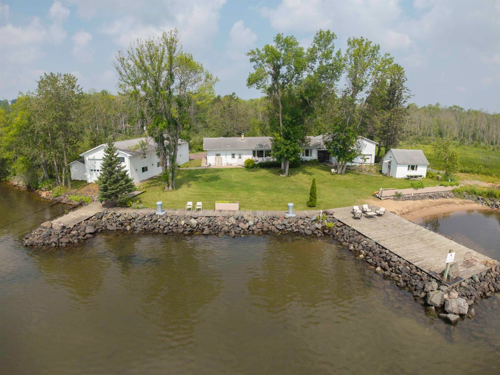 RARE one of a kind private resort style property situated on just under five+/- acres with 500+/- feet of stunning Lake Superior shoreline! Never again to be duplicated this property offers seclusion, a private sandy beach, and absolutely breathtaking panoramic views. The 14x26x70 boathouse perched fifteen feet from shore with upper-level rec room has sweeping lake views, heated floors, and a state-of-the-art rail travel lift system that carries your yacht or small boat in and out with the touch of a button. MESMERIZING views of the Apostle Islands, the Washburn marina, sunsets and moon rises. The traditional three bedroom ranch home with lake views brings many possibilities to rebuild on the footprint or remodel to fit your tastes. Dock your boat at your back door and relax on the lakeside deck that stretches the length of the yard, the boat & dock pictured are also available for sale. Your closest neighbors are swans, eagles, deer and otters. An artesian well offers pure, fresh drinking and bathing water from every tap on the property. Historic treasures from the past abound, you never know what you’ll discover in the lake or on your beach! Separate 14x24x44 garage with two levels including workshop, storage and office space. Privacy, beauty, AND just minutes to downtown Washburn or Ashland round out this unique property!