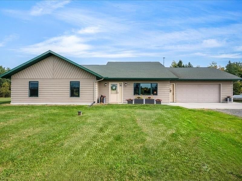 Updated ranch-style home combines privacy, comfort, and recreation on ten scenic acres tucked quietly behind a long tree-lined driveway. This home blends modern efficiency with natural beauty! This home features three bedrooms, two bathrooms, an attached two-car garage, and a detached heated three-car garage with an upper loft storage space and a man cave/bunkhouse (12X25) ideal for hobbies, gatherings, or extra guest space. Inside, the home welcomes you with sunlight streaming across wood ceilings, fresh paint, custom blinds, and the warmth of a free-standing wood stove for those cozy nights. The open-concept floor plan allows the kitchen—equipped with clever lazy susans, soft-close drawers, and a cast-iron double sink—to flow seamlessly into the dining area nook. A patio door leads to a new cement patio slab and sidewalks, perfect for entertaining, barbecues, or simply enjoying morning coffee while deer graze at the edge of the property. The primary suite is its own retreat, complete with a private bathroom with a standing shower with two shower heads, and a sauna—perfect for unwinding after a long day. Two additional bedrooms feature ceiling fans, ample closet space, and the comfort of soft carpeting and in-floor heating. Utility features include dual 2,000-gallon holding tanks, a drilled private well, a water softener (owned), propane on-demand hot water and boiler, ductless mini split, and an in-floor heating system with a geothermal field already installed, giving you the option for future energy savings. Beyond the walls of the home, the land offers year-round adventure. Professionally landscaped, with several apples, crab apple trees, pear trees, lilacs, and wildflowers dot the landscaping, while a pond invites kids to explore for frogs and dragonflies. Newer 10X20 shed with dual lofts for storage. Every season brings something new: walking to nearby Amnicon Falls State Park, or stargazing and catching the Northern Lights on clear nights. Hunters will like the deer stand by the creek and a tree house for the kiddos. The property connects near the Tri-County Corridor for outdoor enthusiasts, offering hundreds of miles of ATV, UTV, and snowmobile trails—no trailering required. Conveniently located near Hwy 53, Hwy 2, and Hwy 13, and a short drive to Superior for everything you need, and Duluth, MN if you need to use an airport. There is an option to purchase an additional 10 acres on the North side of this property.