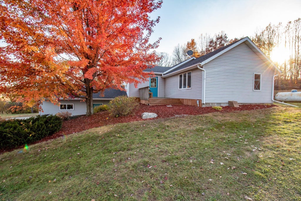 Discover country living in this charming 4-bedroom, 2-bath home on 5 acres. Enjoy spacious living and family rooms, an eat-in kitchen, and informal dining. Outside, relax on one of two decks amid beautiful landscaping. The property includes a large lower-level room and a 2-stall detached garage for ample storage. Perfect for hobby farming, it features a barn and shed for your projects or animals. A new septic system adds peace of mind. Plus, nature enthusiasts will love the 20+ lakes nearby!