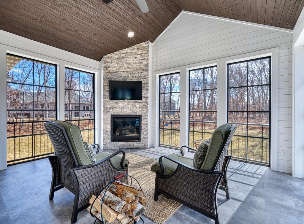 This exquisite like-new 2021 Parent custom-built rambler offers the perfect blend of modern luxury and wooded living without the hassle or waiting for a new build. Nestled on a 1.15-acre wooded lot, this stunning residence features 4 bedrooms and 3 bathrooms, designed for both comfort and style.The Main Floor features a spacious gourmet kitchen with elegant granite countertops, a striking wall of windows, and beautiful natural hickory hardwood floors. The large center island overlooks the dining area, living room, and an inviting 3-season porch. The 3-season porch is a delightful space featuring a floor-to-ceiling stone gas fireplace, vaulted cedar ceiling, and floor-to-ceiling screened windows. Both sides of the double sliding patio doors open to this versatile area, providing a seamless transition from indoor to outdoor living. A spacious Bonus Room above the garage provides extra space for hobbies or relaxation The main flr Primary Bdrm boasts an elegant ensuite bathroom with heated floors, offering a spa-like retreat. The fully finished LL features 2 additional bedrooms, a 3/4 bath, a beautifully designed bar/entertainment area, and a family room area featuring a gas fireplace, built-in cabinets and shelving - all creating a cozy and functional space for gatherings. Additional Features include a maintenance-free deck which is perfect for enjoying the serene outdoor setting, and an Oversized Heated Garage with extra space for vehicles and storage. This home offers a unique opportunity to enjoy a beautifully crafted space with all the modern amenities.
