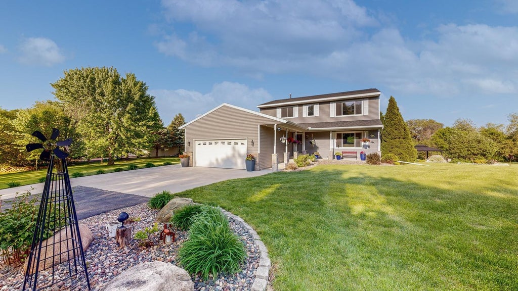 Beautiful 4-bed, 4-bath, two-story home on 4.2 acres with an additional 24x26 garage for recreational vehicles or for use as a workshop! The main level features charming LVP flooring throughout, a cozy living room with fireplace and skylights, a great room for gatherings, & a kitchen boasting stunning granite countertops, ample storage, and an adjacent office area. On the 2nd level, discover a spacious primary bedroom with a private ensuite bath and walk-in closet, along with 2 more bedrooms and a full bath. The lower level offers a large family room for recreation or relaxation, plus a 4th bedroom & bathroom. The home's highlight is an entertainer's paradise with a well built outdoor kitchen for all your grilling needs; refrigerator, counter space, eat in area, shelving, and additional patio seating! School district choices include the surrounding areas (Stewartville, Dover-Eyota, Chatfield, etc.). Discover the serene beauty of this meticulously landscaped oasis – a true must-see!