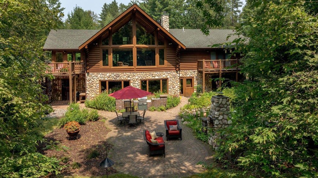 This exceptional Kabekona Lake property offers a rare combination of a level lot with a hard-bottom sandy lakeshore and a beautifully maintained home. The private lakefront yard is ideal for enjoying the water, while an outdoor patio with a kitchen bar makes entertaining easy. Inside, the classic Northwoods log home features warm wood finishes, a spacious great room with vaulted ceilings, a stone fireplace, and large windows that bring in plenty of natural light. The open layout flows into the dining area and a well-designed kitchen with custom cabinetry. The loft provides panoramic views and versatile space for work or relaxation. The primary suite includes a private deck overlooking the lake, a fireplace, vaulted ceiling, and a large ensuite bath. A four-season sunroom and wraparound decking add even more lake-facing living space. The walkout lower level includes two additional bedrooms, a full bath, laundry with ample storage and dog wash, and a family room with high ceilings and plenty of natural light. Additional features include a fully log-constructed two-stall garage, a new 30x48 storage building, and a charming gardening shed. If you’re looking for a private, sandy shoreline and a home designed for both comfort and practicality, this property is a must-see!
